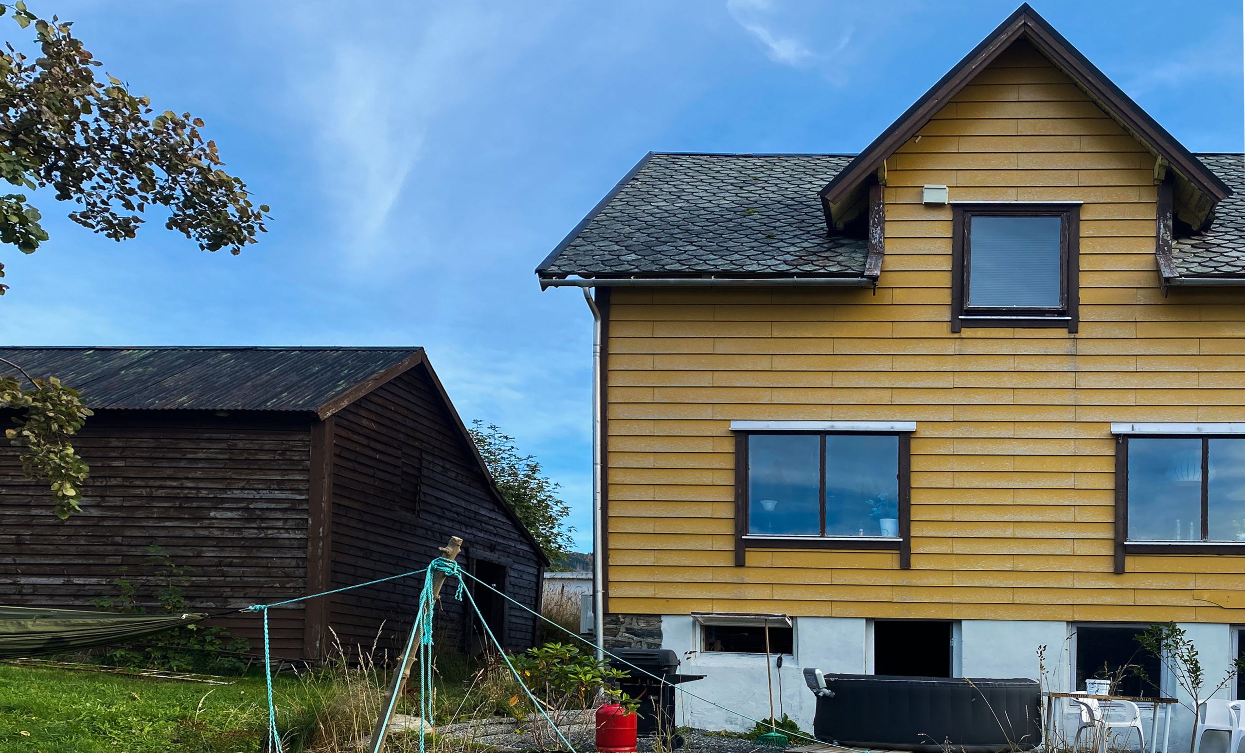 «Kom til det innerste, gule huset», skriver Stian til oss i en tekstmelding. Vi går til enden av gaten og ser det gule, ganske slitte huset. Her bor han med fire andre kompiser. Fra mars til juli, satt han likevel her helt alene.