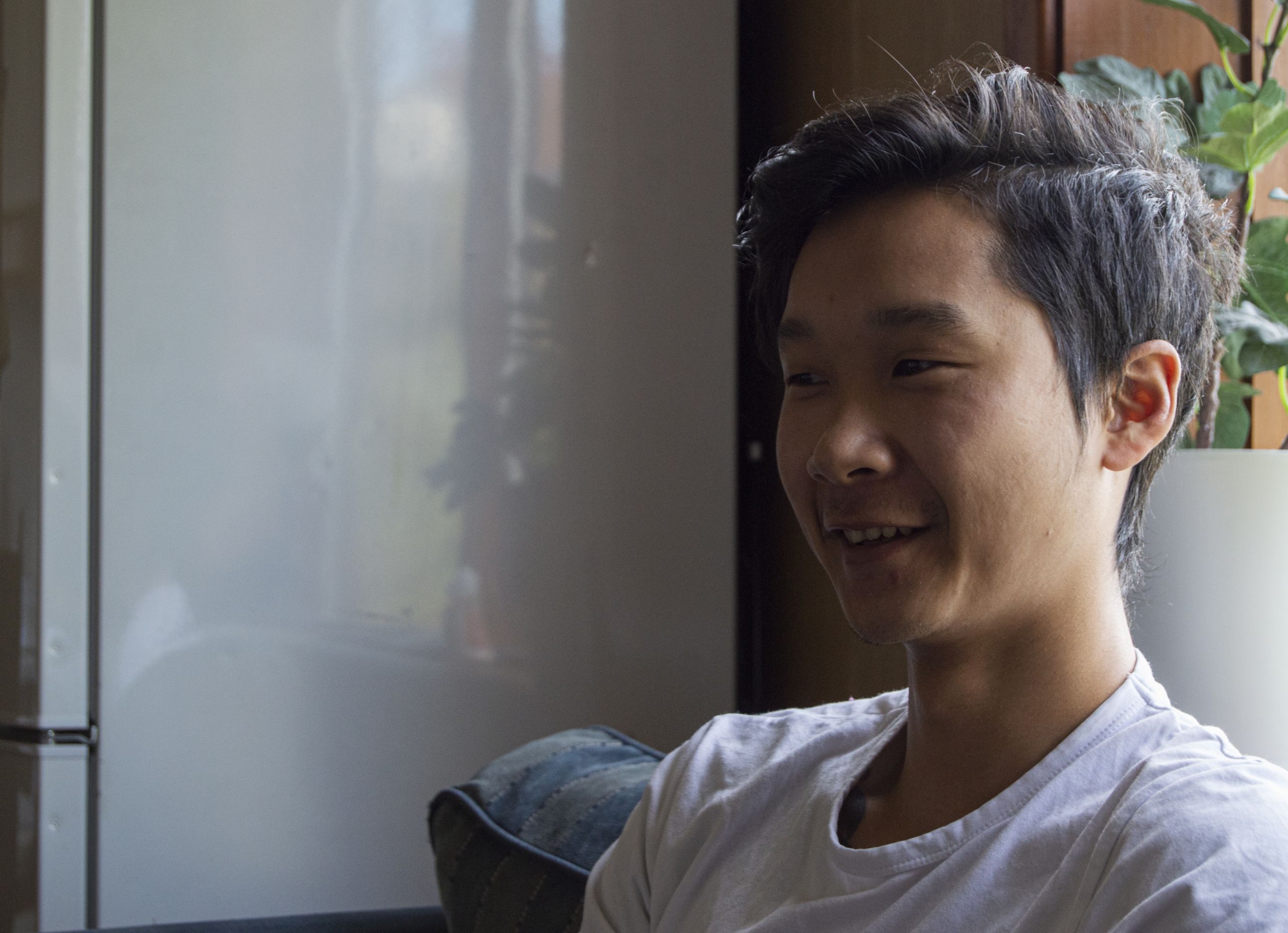 Bodøværingen Stian Woo Andersen (23) studerer historie ved Høgskulen i Volda. Han flyttet til bygda i 2019. Ved inngangsdøren ligger det en haug med sko. Vi ringer på.