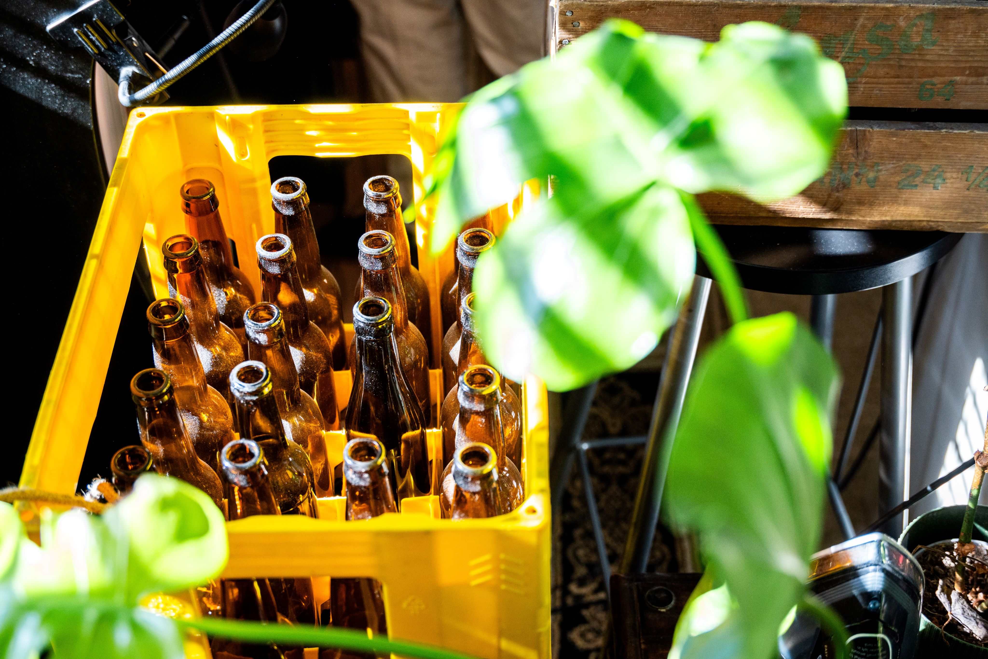 Det utsaget kan tolkes på flere måter, for rommet er både fylt med instrumenter, og kassevis med tomme ølflasker. Eller mer presist ubrukte ølflasker. På disse tappes guttenes hjemmebryggede øl.
