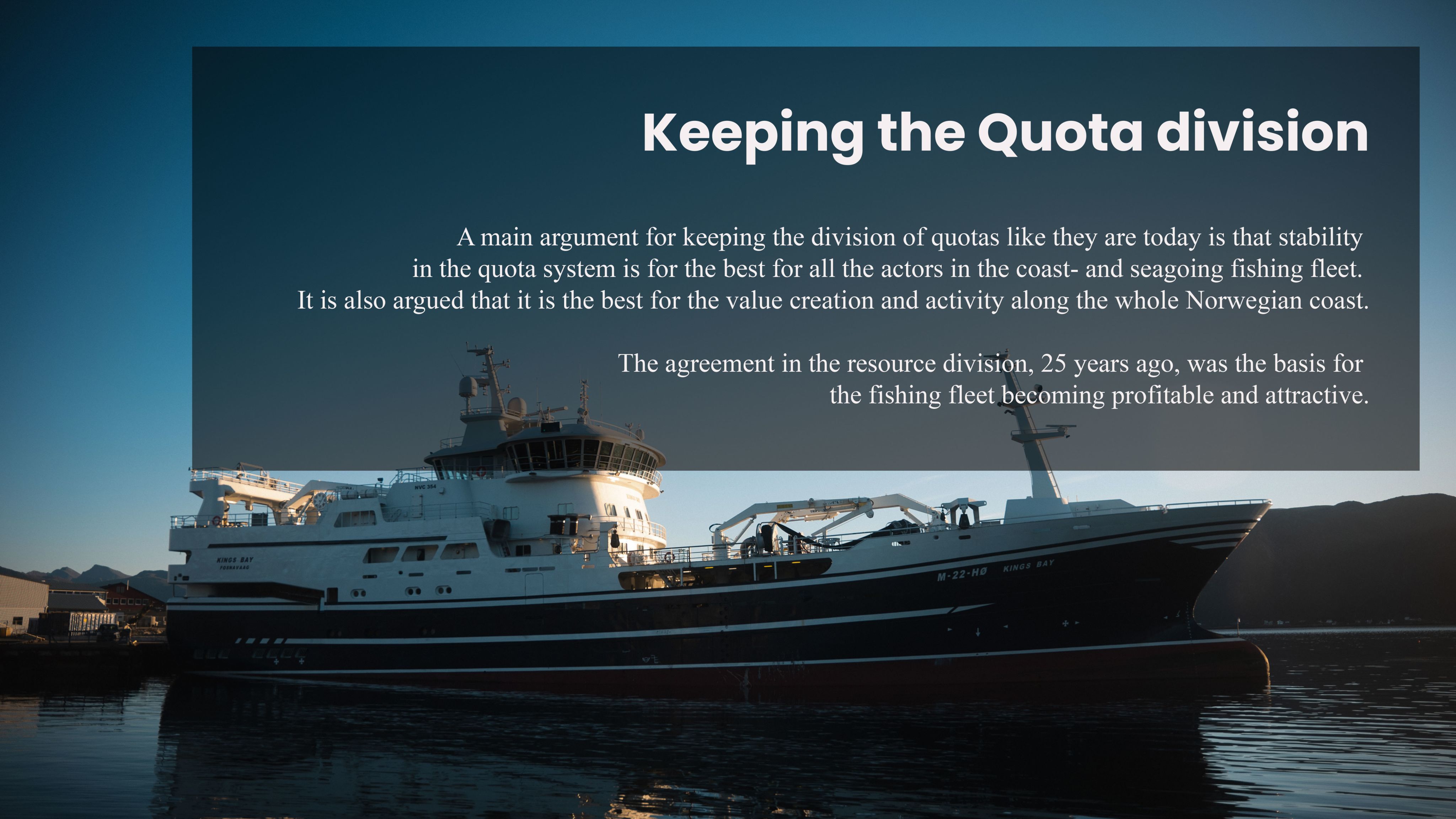 The year 2027 is mentioned as an important date by all industry actors, marking a potential turning point. Structural quotas to a value of 50 Billion NOK are on the line, as regulations are expiring in this year. It is still unclear how the quotas will be distributed among the fishing fleets.