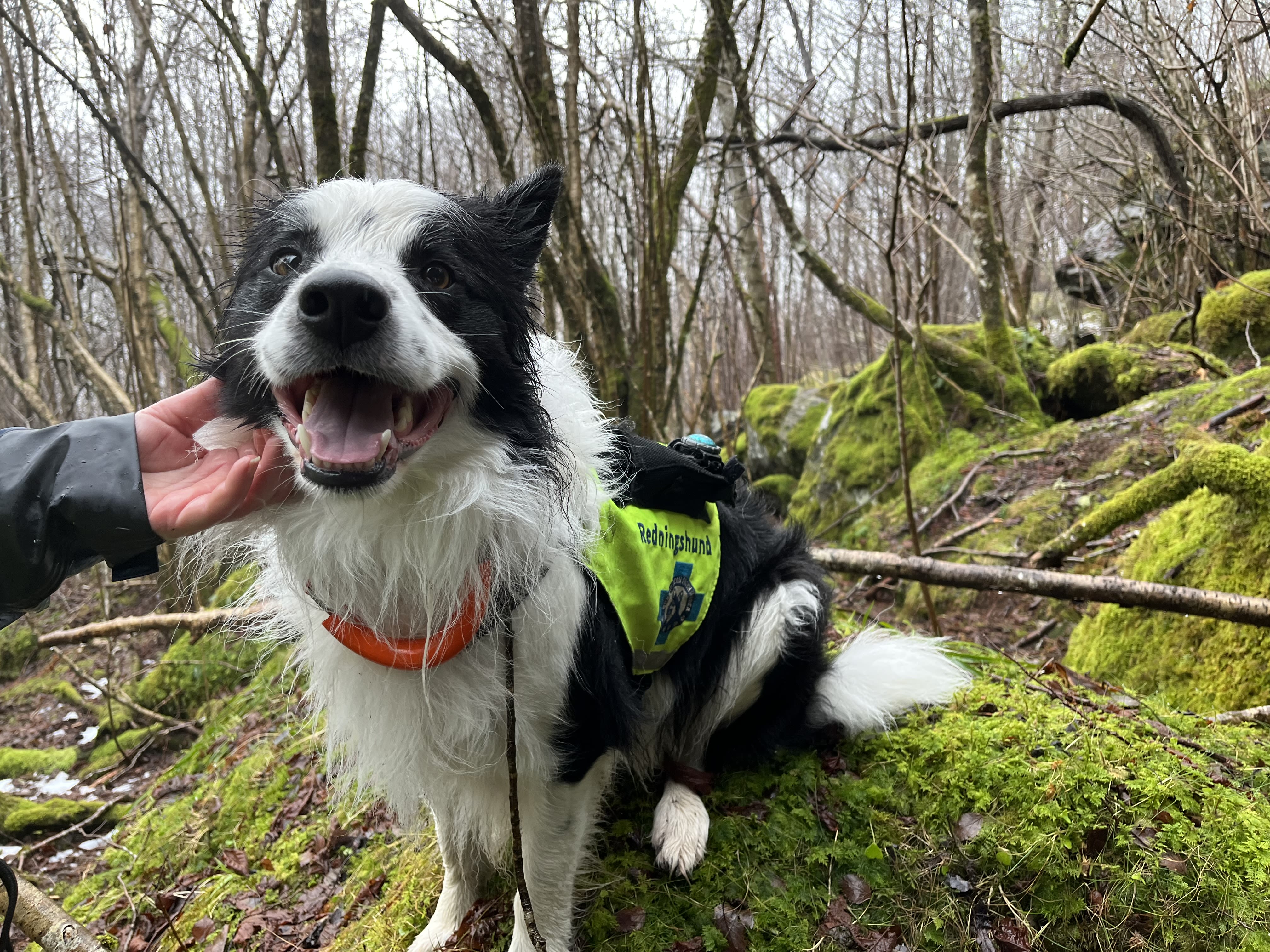 Når redningshundene har funnet noe, signaliserer de med å putte et bånd i munnen.