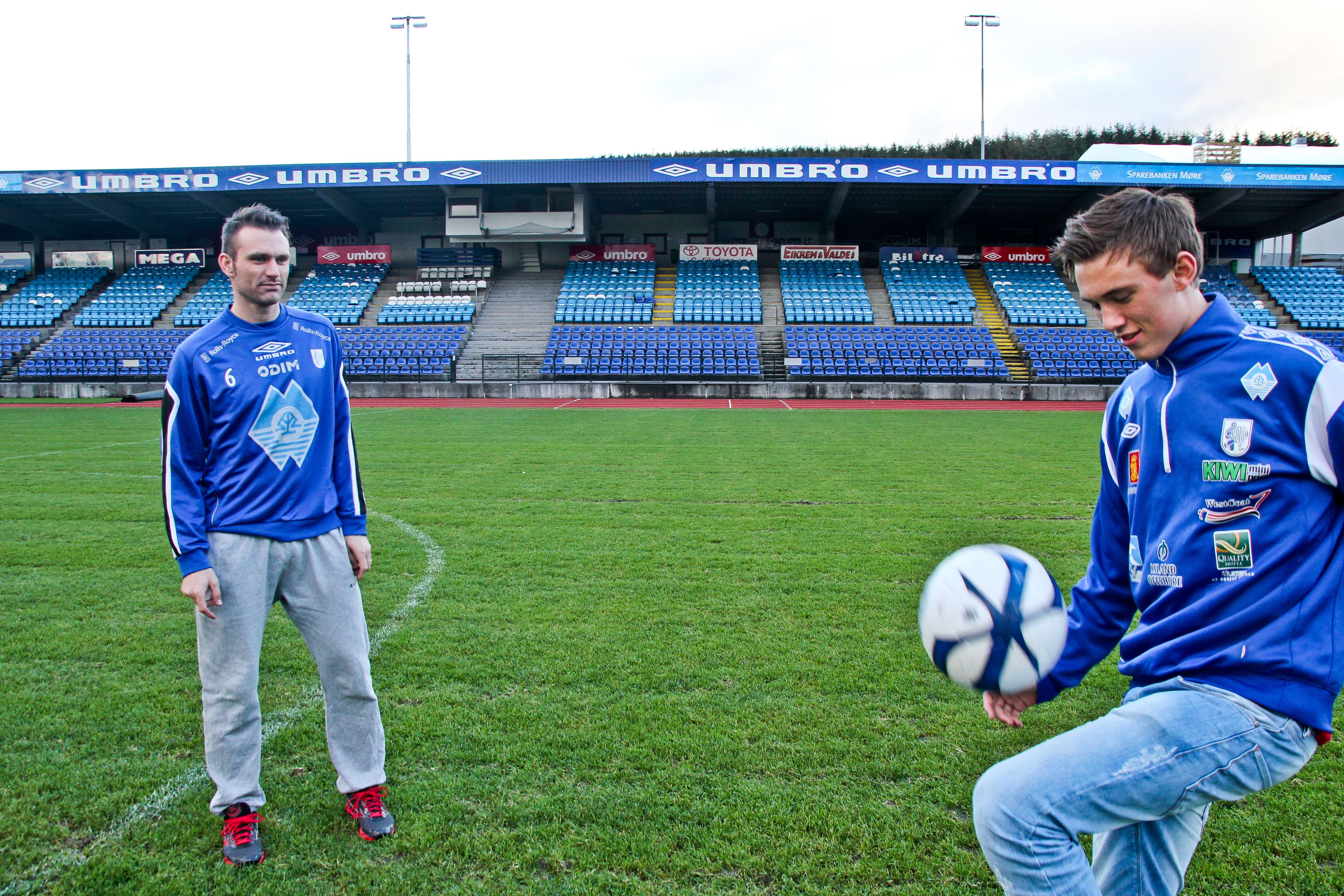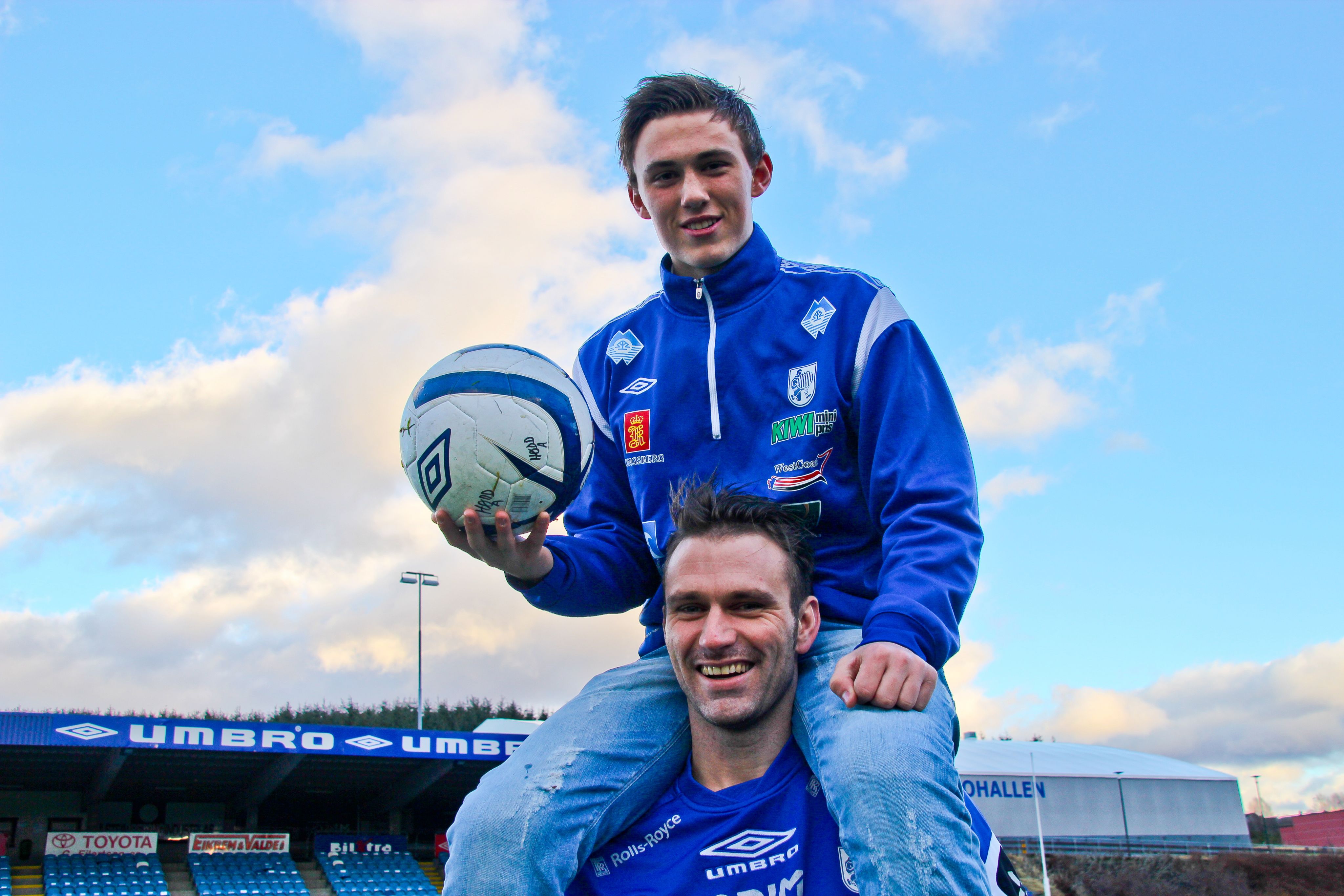 Her er Aursnes sammen med søskenbarnet Vegard Heltne. Begge to startet i cupfinalen.