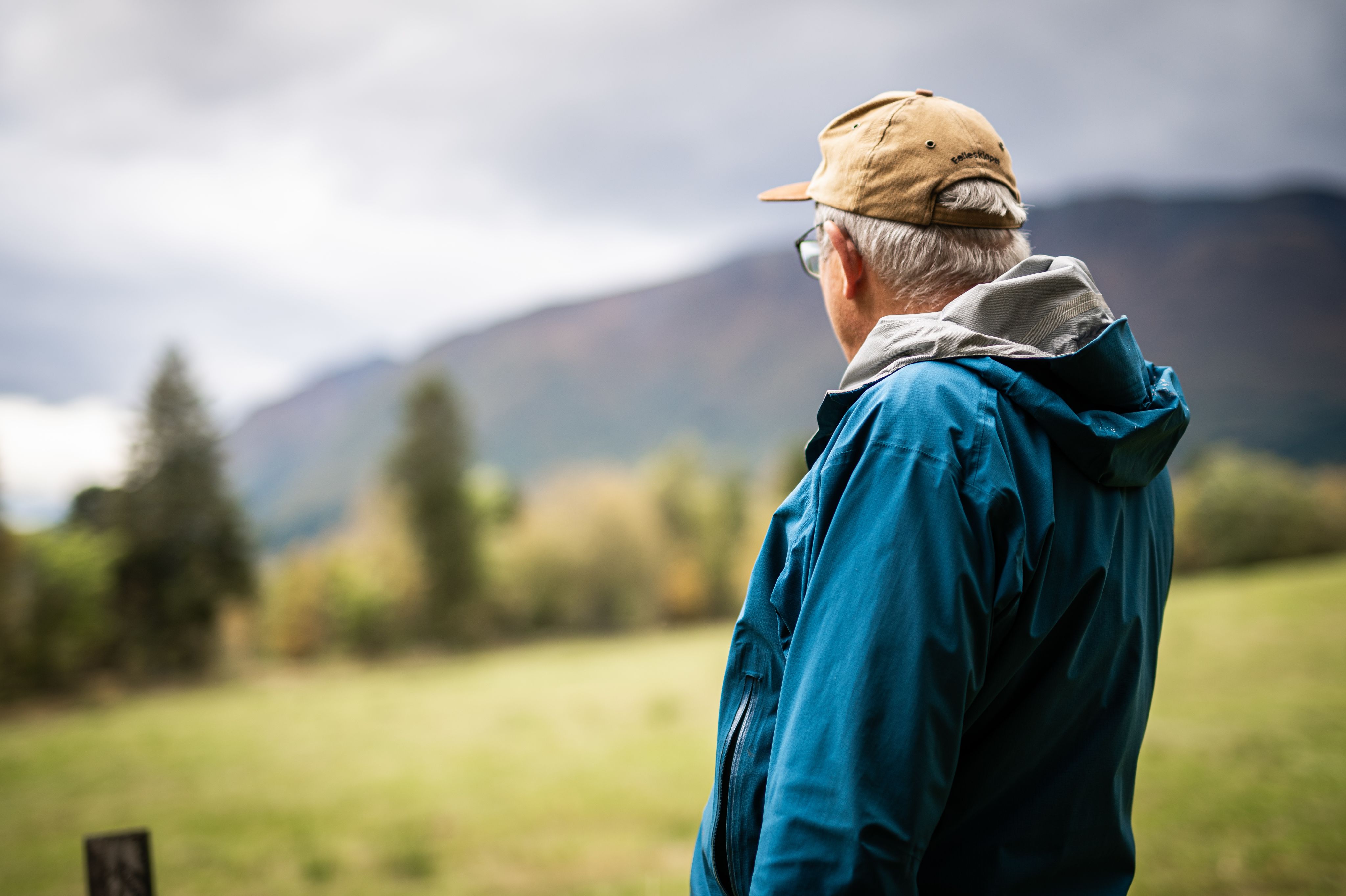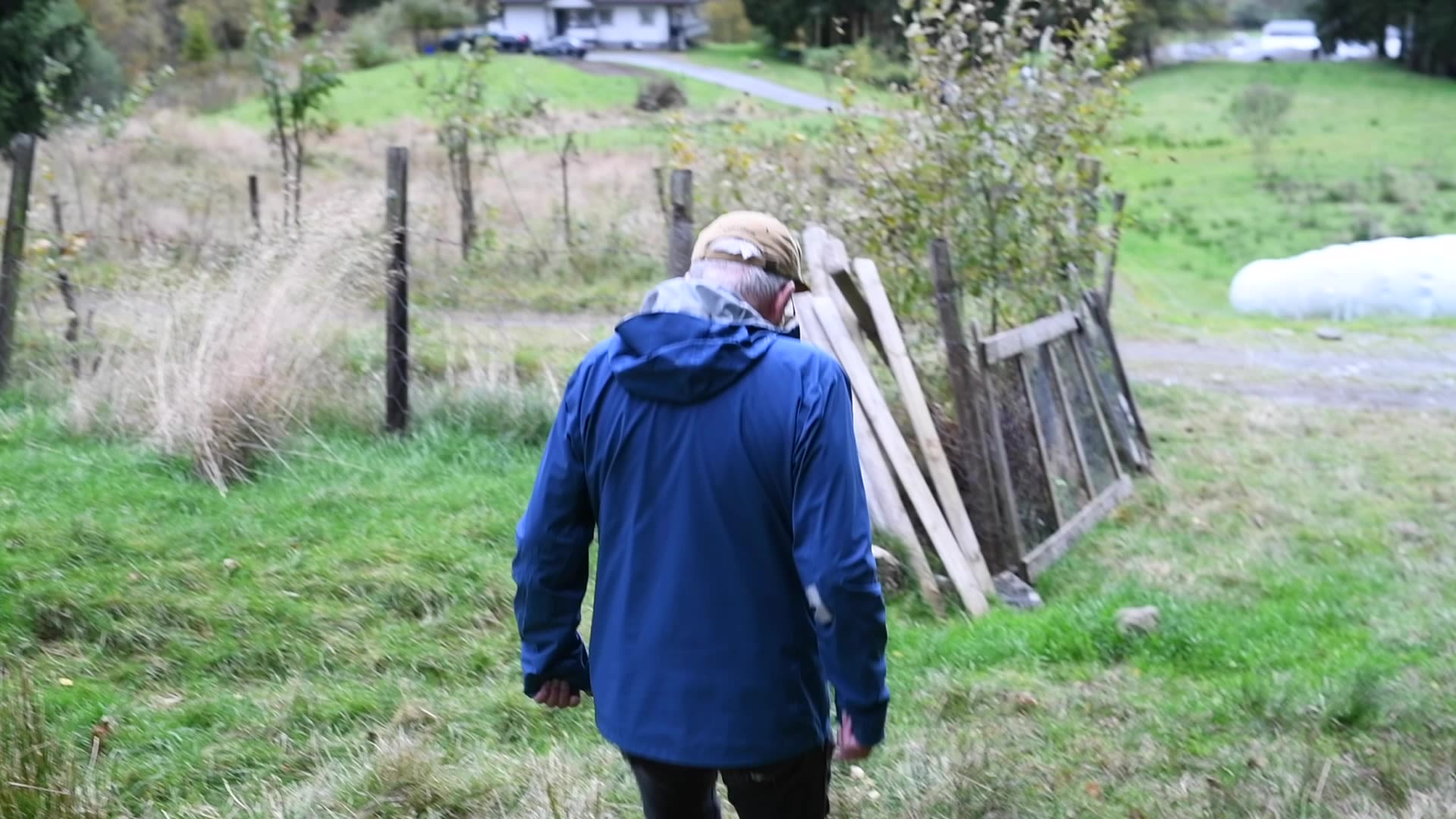 Elias Moe speider utover gården sin. Livsverket sitt.
