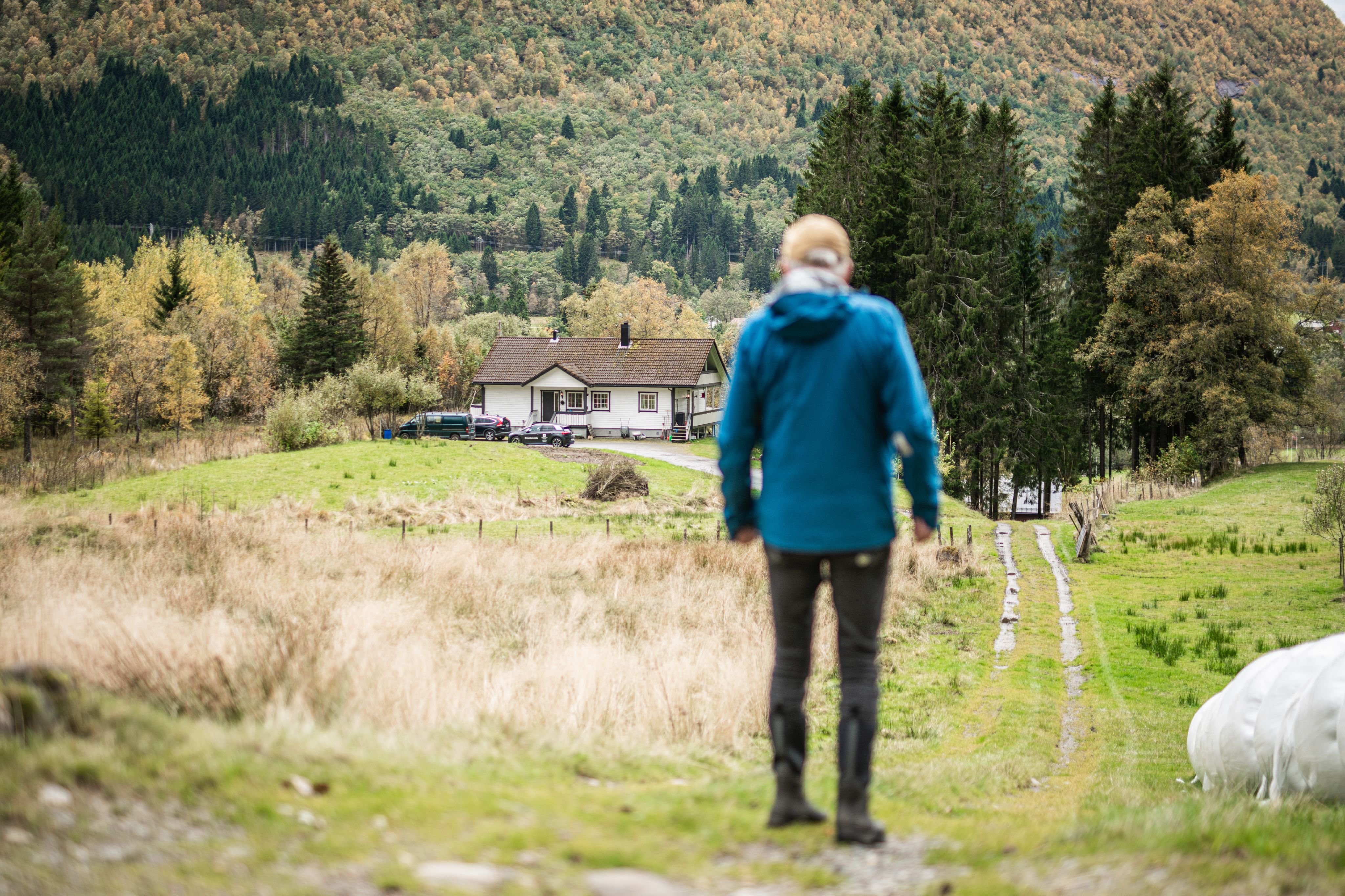 Sønnen har bygd hus her og bor på gården med sin familie. Planen er at han skal ta over etter hvert.