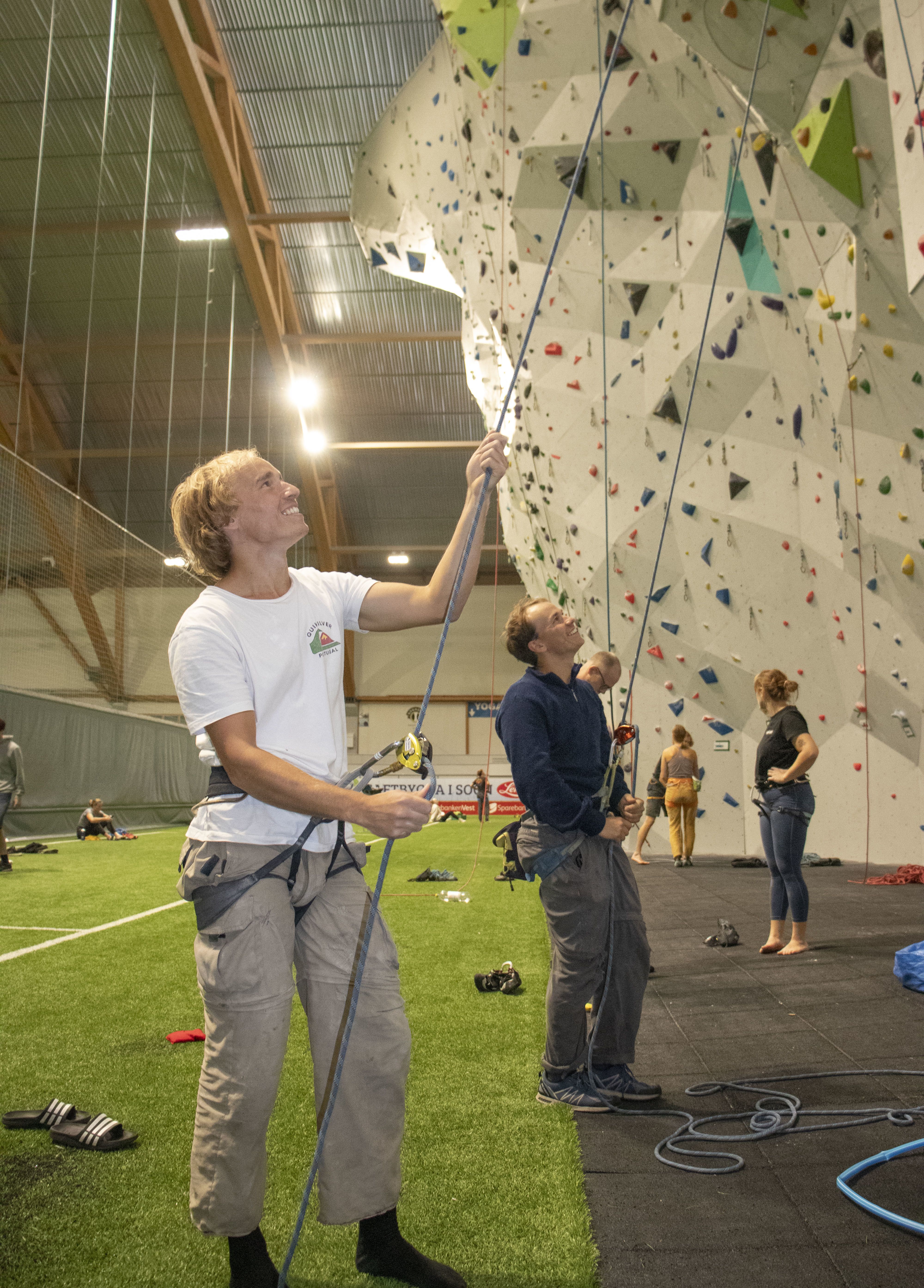 - Vi pleier uansett å være her å trene selv, så det er bare hyggelig å bli noen ekstra timer for å hjelpe flere å få klatra, sier Asgeir.