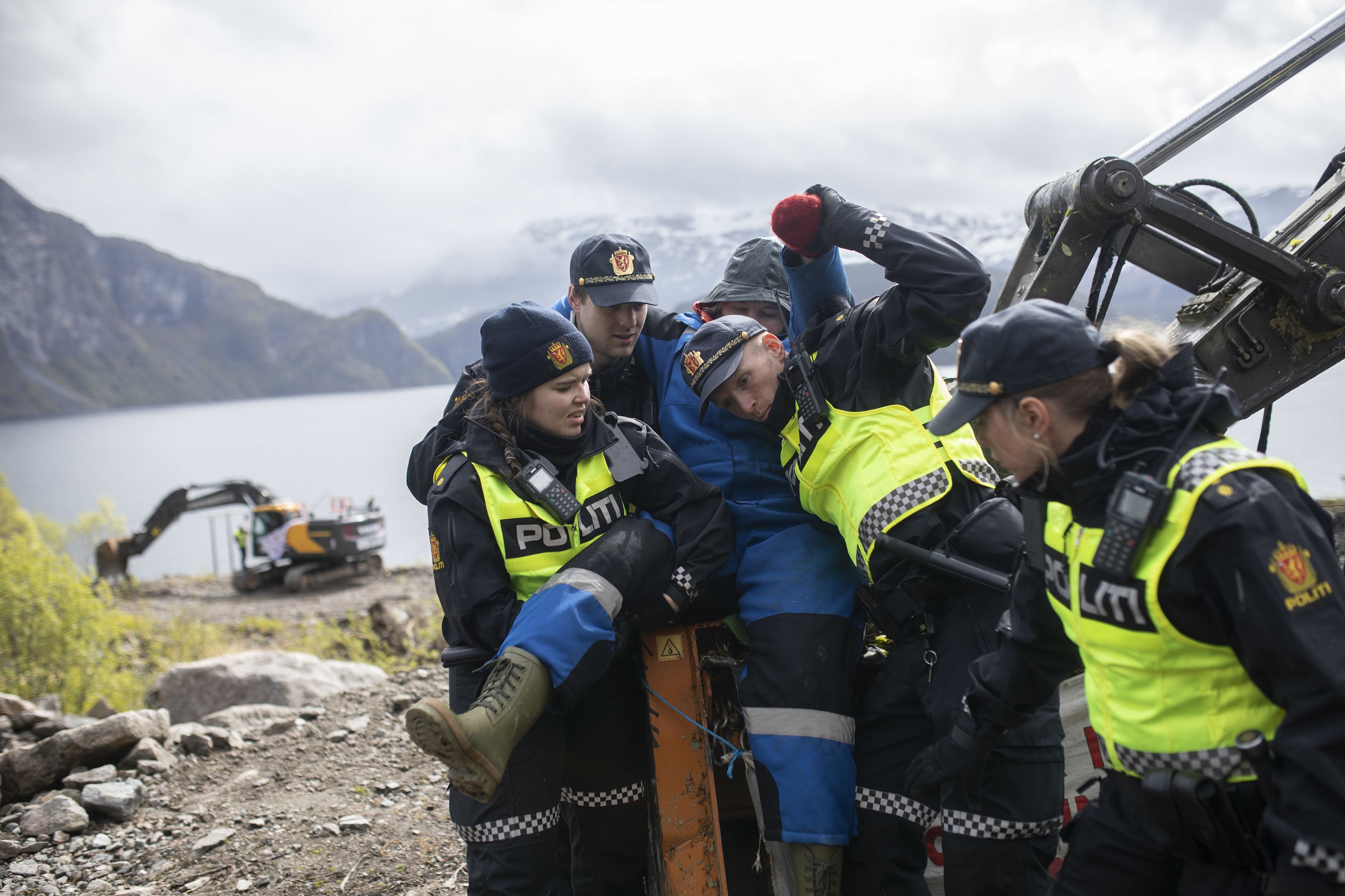 Hun prøvde å gjemme låsen på kjettingen innunder gravemaskinen for at den skulle være vanskelig å finne. Da politiet kom og klipte henne løs, gjorde hun kroppen så slapp og tung som mulig. Fire politifolk løftet henne opp og bar henne inn i bilen. Alt hun gjorde var å rope for fjorden. Det hele føltes som en film forteller hun.
