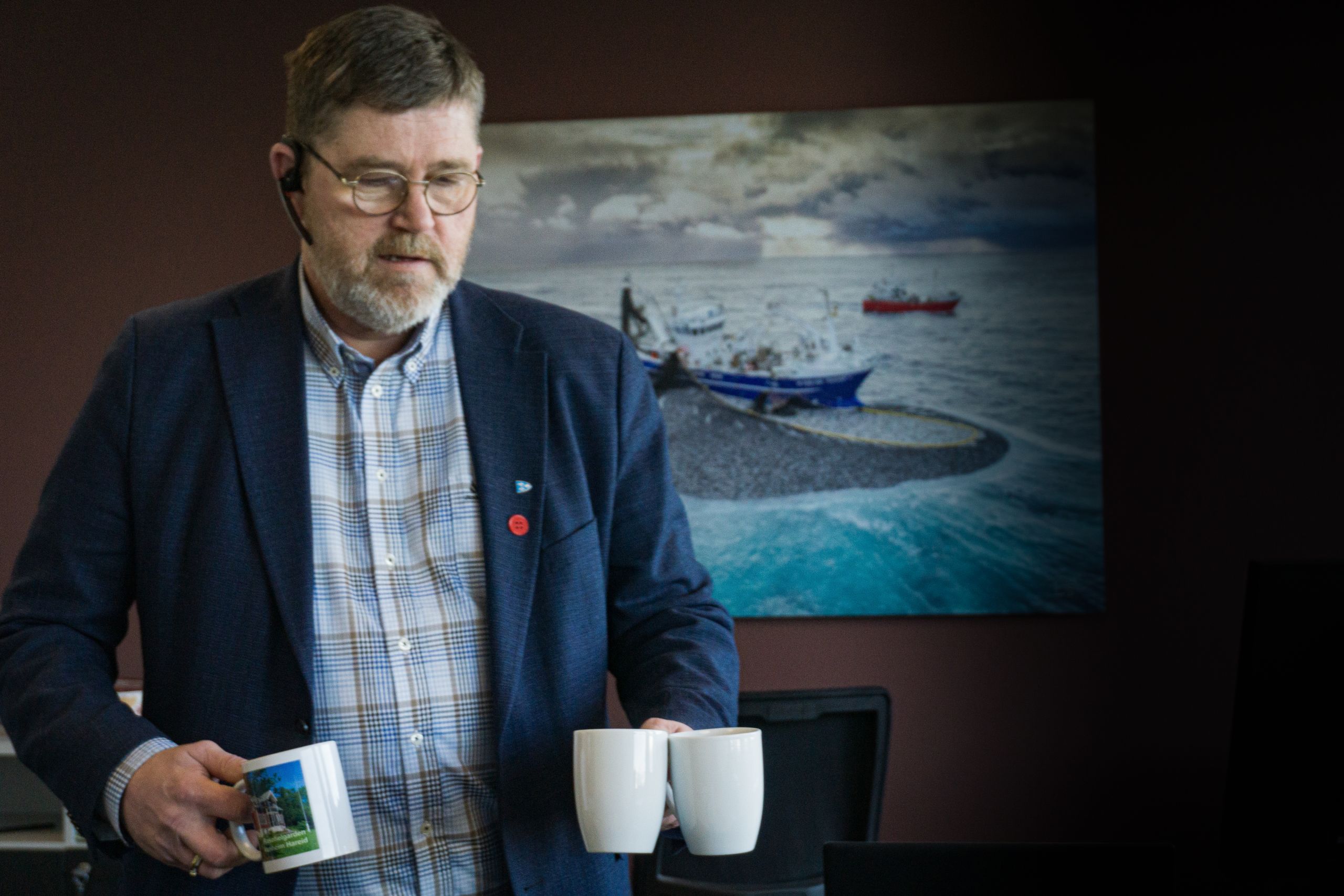 – Vil dere ha kaffe? Ja? Jeg går og henter. Bare vent på kontoret mitt.