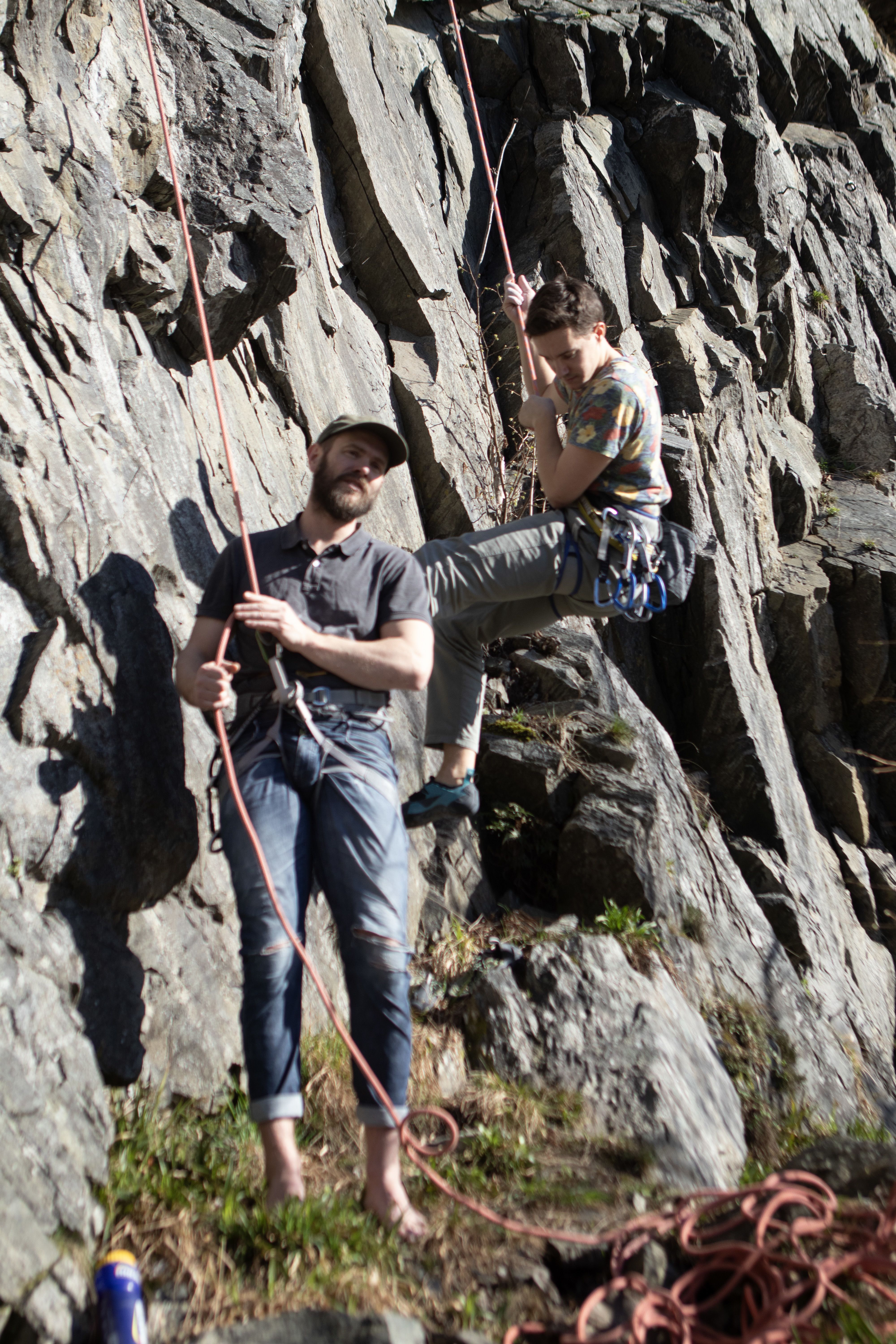 – Å alltid holde tauet. Det er absolutt det viktigste sammen med det å følge med på han når han er oppe i høyden. Hvis jeg gir han for lite tau så kan jo det dra han ned fra veggen. Om jeg gir han for mye tau så kan han treffe bakken om han faller ned. Hvis han er sliten så er det jo lurt å passe på at jeg kan ta inn tau om det er for mye tau ute. Så det er veldig viktig å følge med på hva han gjør.