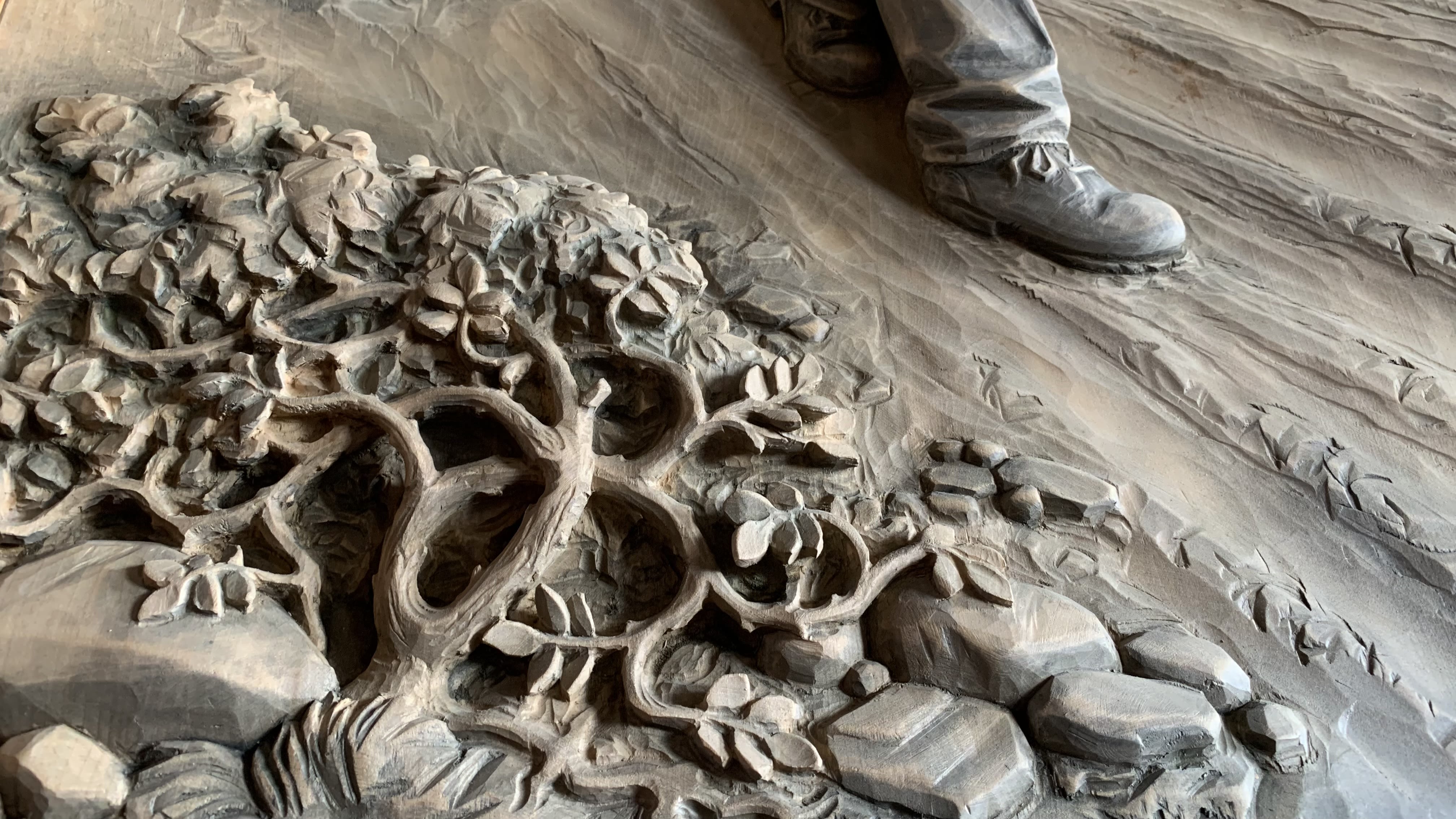 Krattet ved mannens høyre fot viser frem kunstnerens enorme presisjon. Skyggene kan få en til å undre på om det gjemmer seg noe der inne.