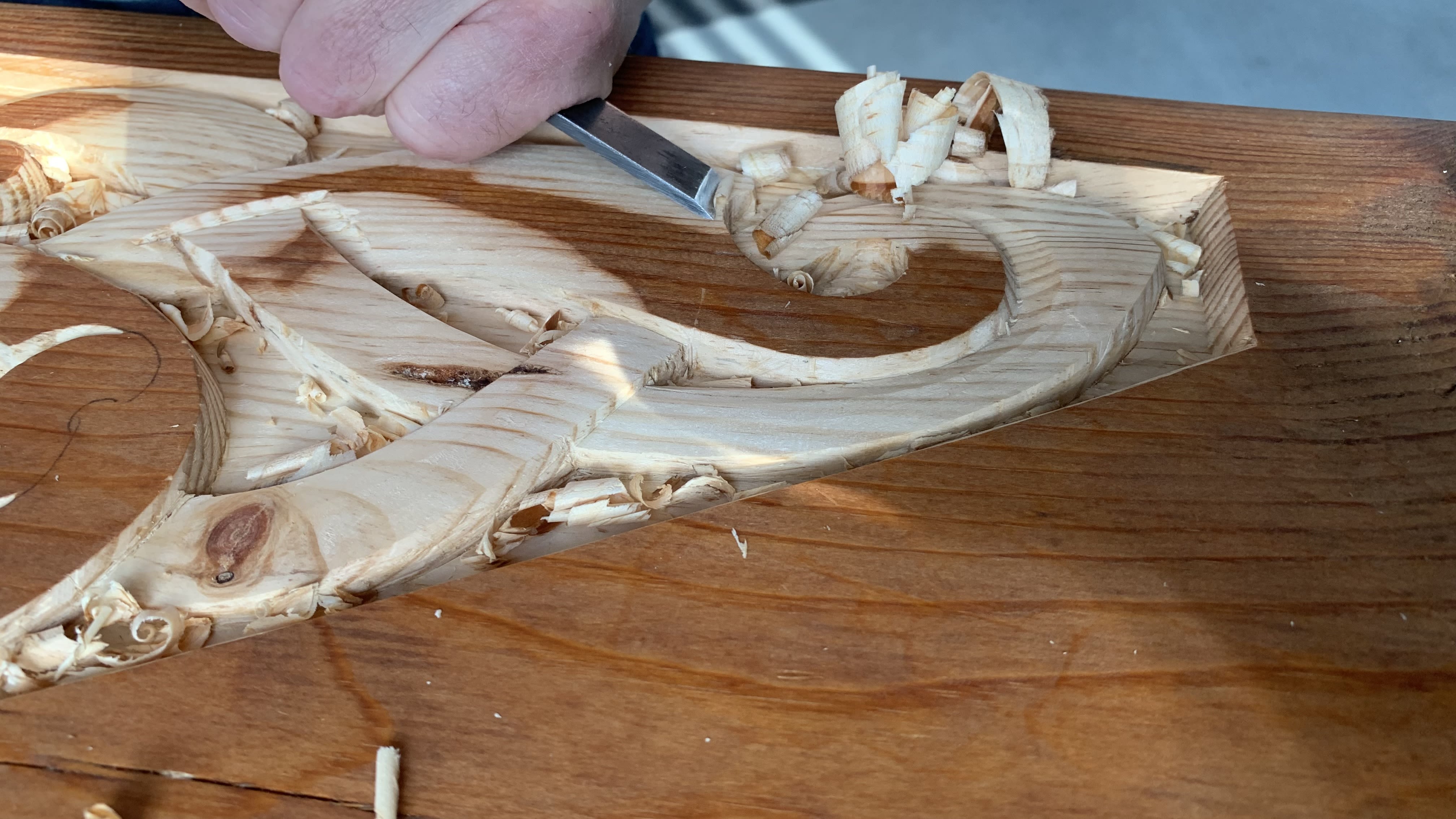 Underveis i det ene kurset Rolf holdt for en del år siden gikk det nesten ordentlig galt. Det var ei som sleit noe veldig på en spesielt hard del i treet. Hun kjørte treskjærerjernet så hardt hun klarte ned i emnet...