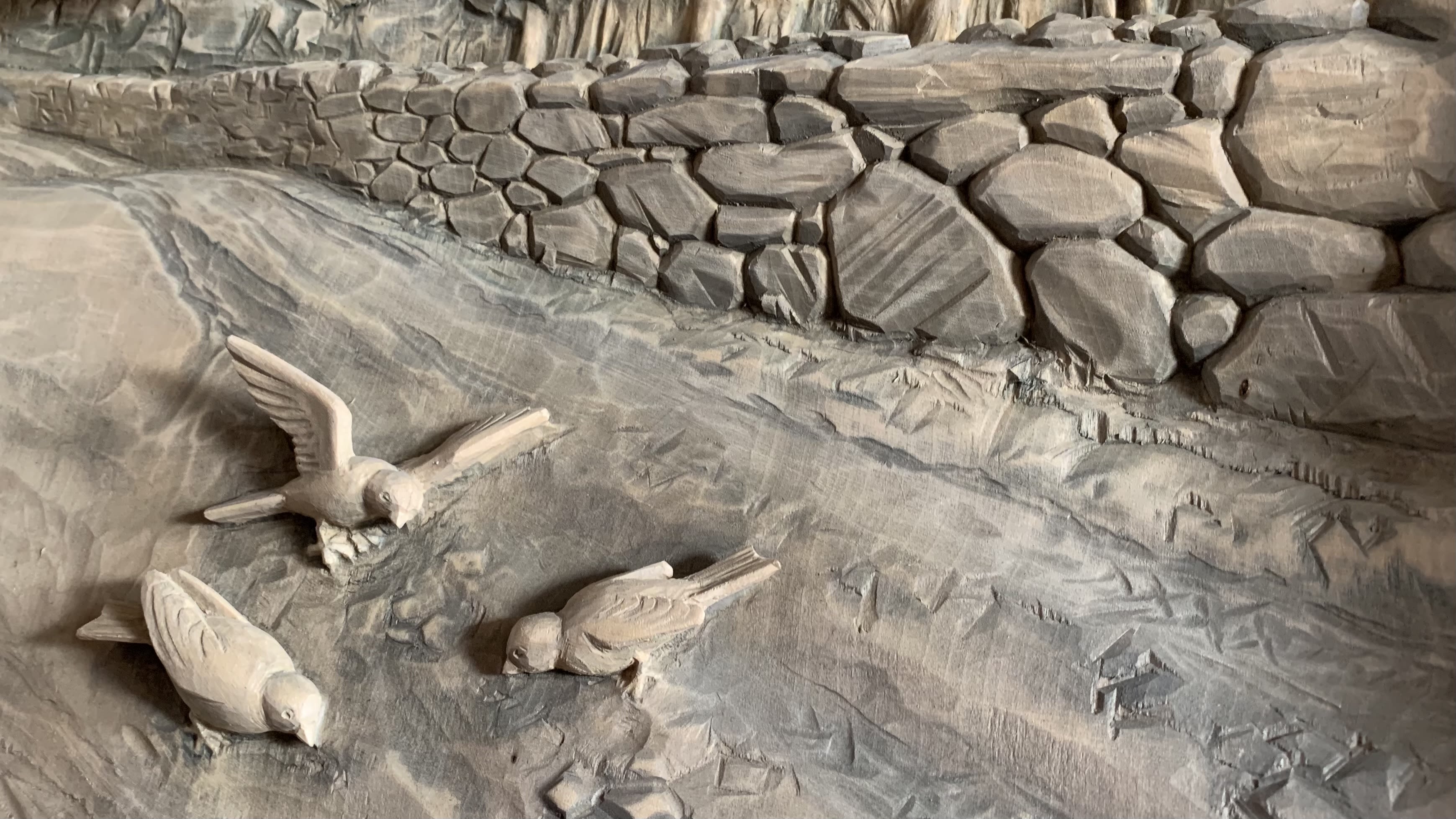 – Ved at jeg har gjort steinmuren veldig detaljert foran, før den så gradvis blir mer og mer utydelig bakover skaper jeg en god tredimensjonal effekt, forklarer han.